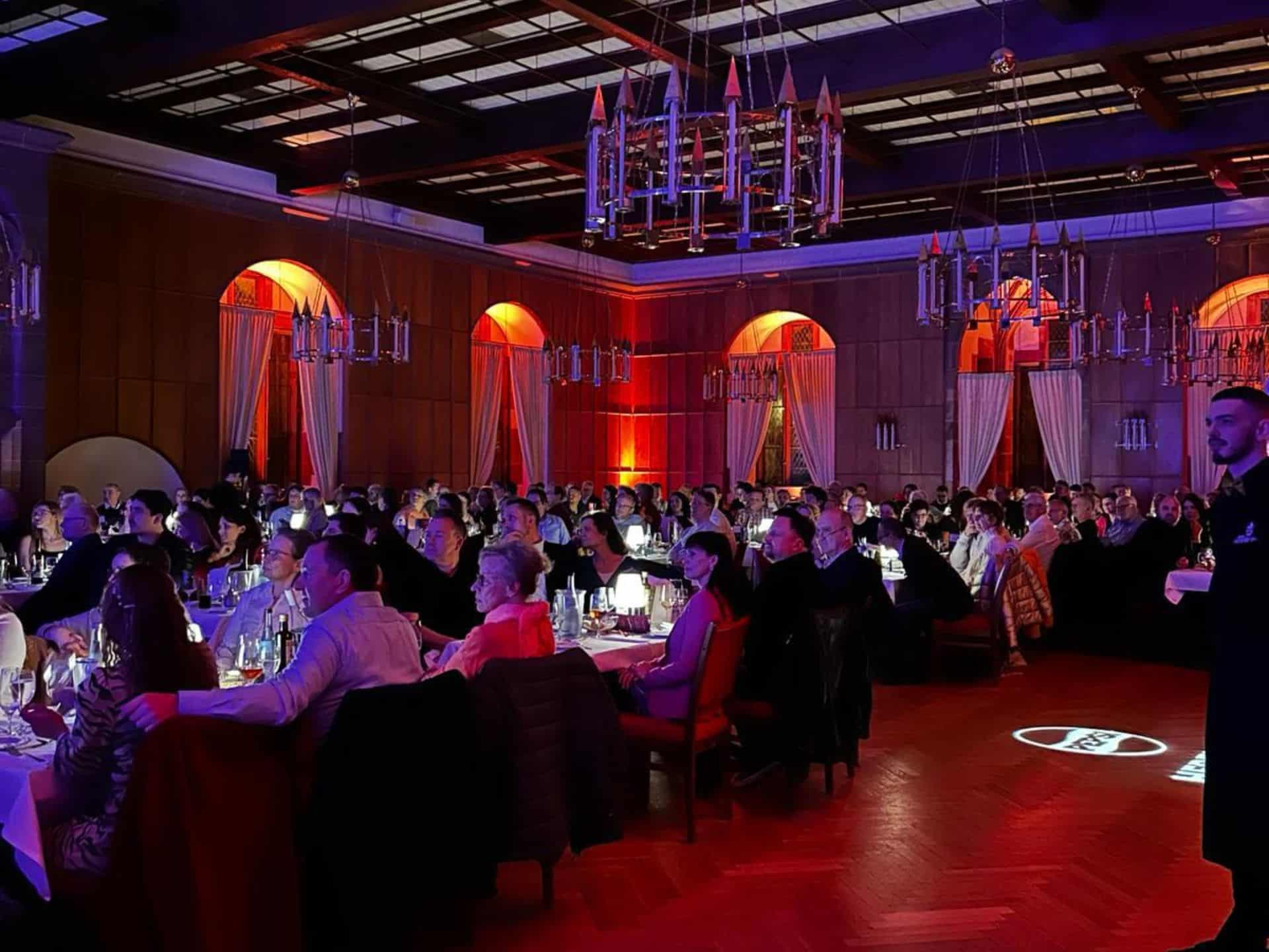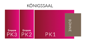 Der Königssaal ist in allen Kategorien mit 6er- und 12er-Tischen bestuhlt. Jeder Gast hat optimale Sicht auf die Bühne und Show. Auch von Parkett 2 und 3 aus, im hinteren Bereich des Königssaals, genießen Sie von unserer Empore einen optimalen Blick auf die Bühne. Gruppenbuchungen werden gemeinsam platziert, je nach Gruppengröße an nebeneinander liegenden Tischen. Bei uns werden Sie sorgfältig von unserem Gästemanagement platziert, bei Fragen sind wir gerne für Sie da. Bitte beachten Sie, dass ausschließlich zusammengehörige Tickets innerhalb eines Parketts gemeinsam platziert werden. Eine Kombination von Tickets aus verschiedenen Parketts ist nicht möglich.