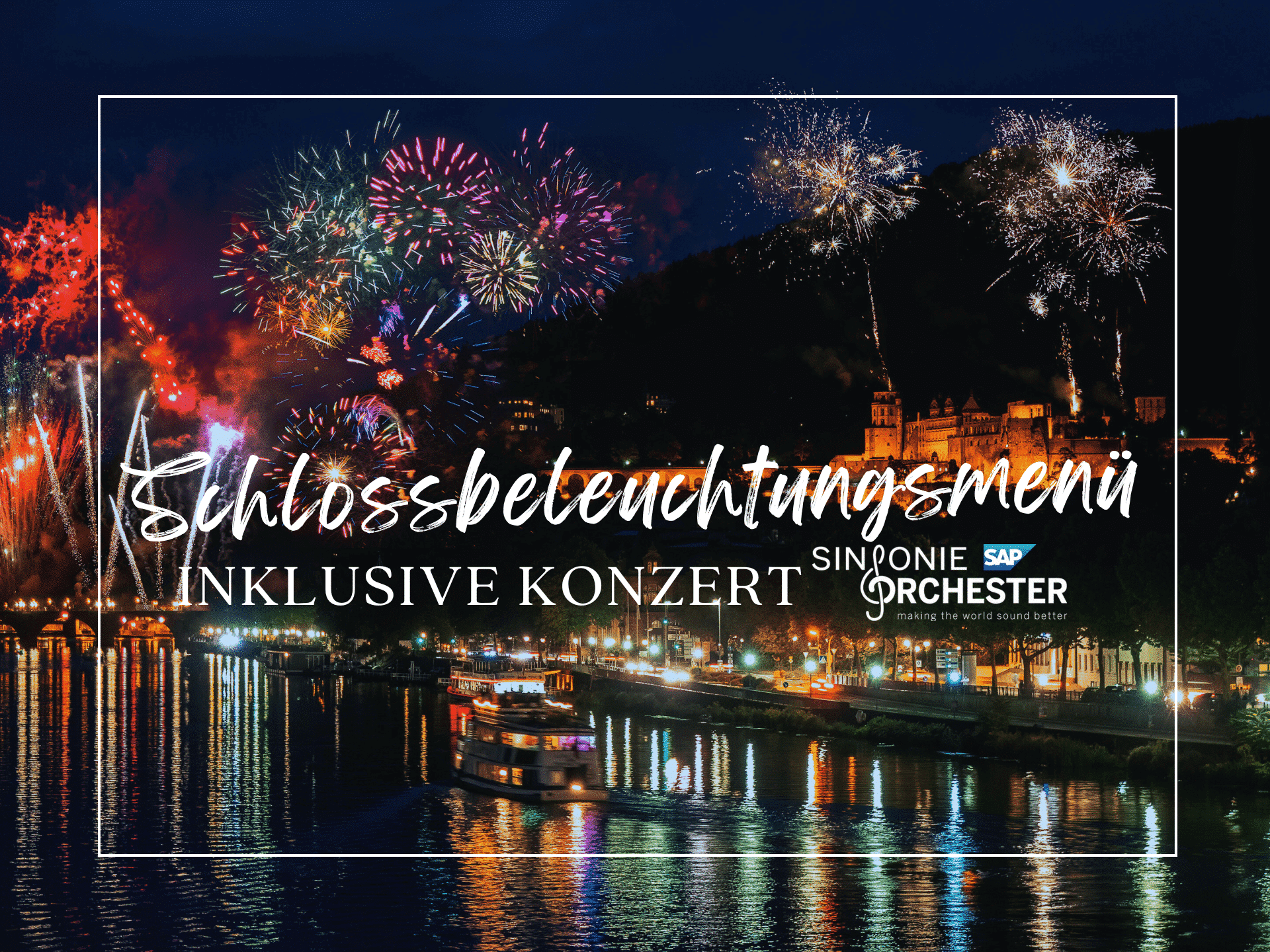 Erleben Sie die Heidelberger Schlossbeleuchtung aus erster Reihe – exklusiv und genussvoll bei einem besonderen Abend in einzigartiger Atmosphäre. Wählen Sie zwischen zwei stilvollen Locations: